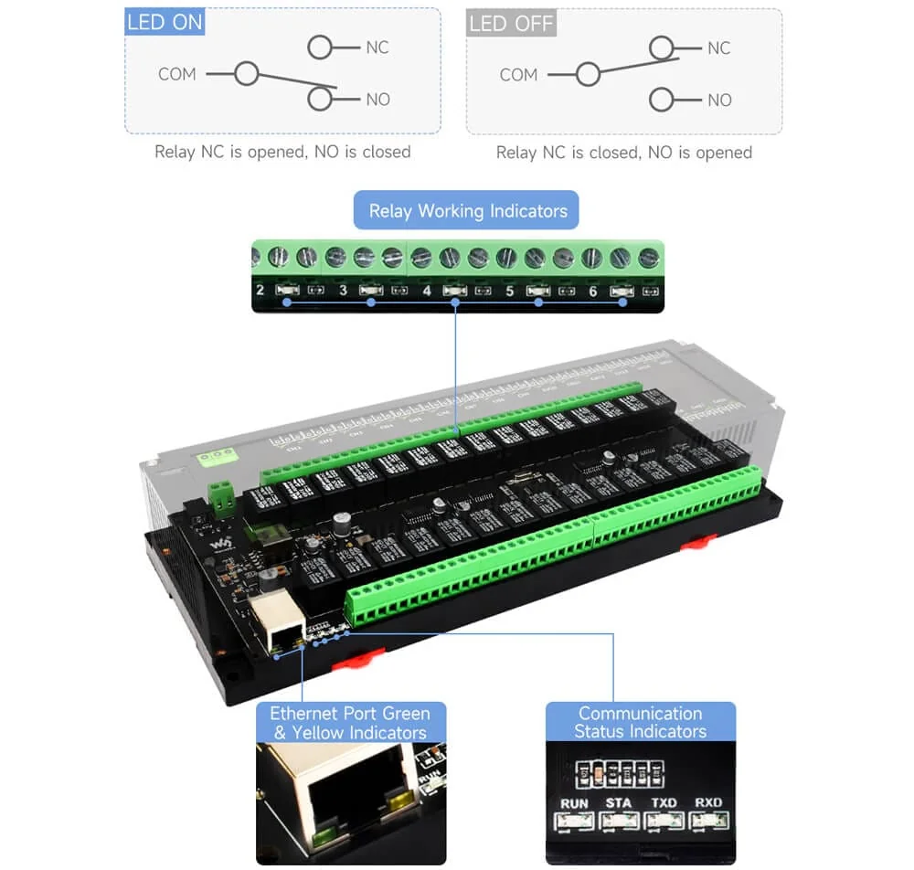 Bu 30 kanallı röle modülü, Modbus RTU ve Modbus
