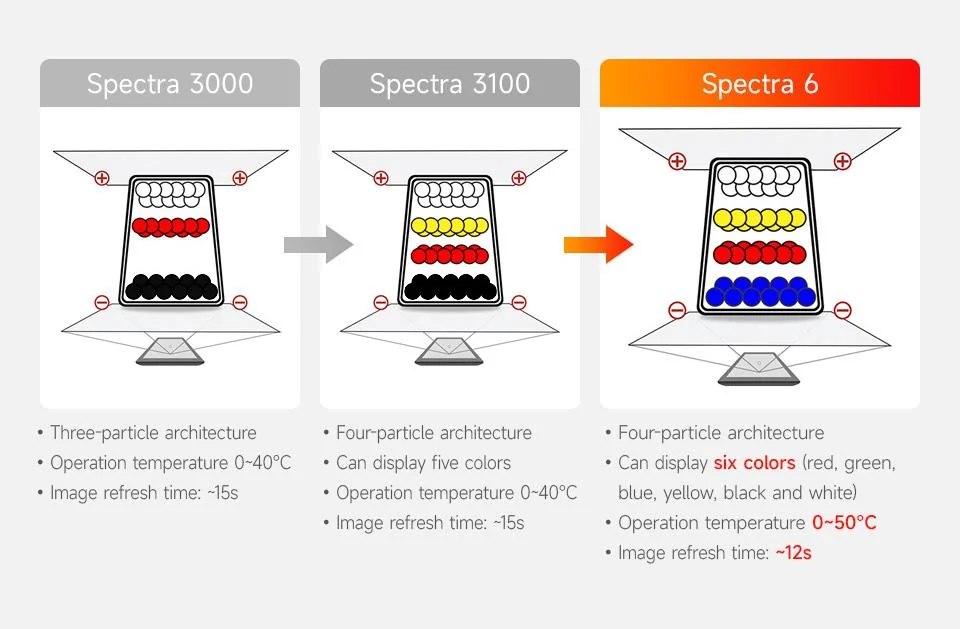 7.3 inch E Ink Spectra 6 tam renkli e-paper display, yüksek kontrast ve