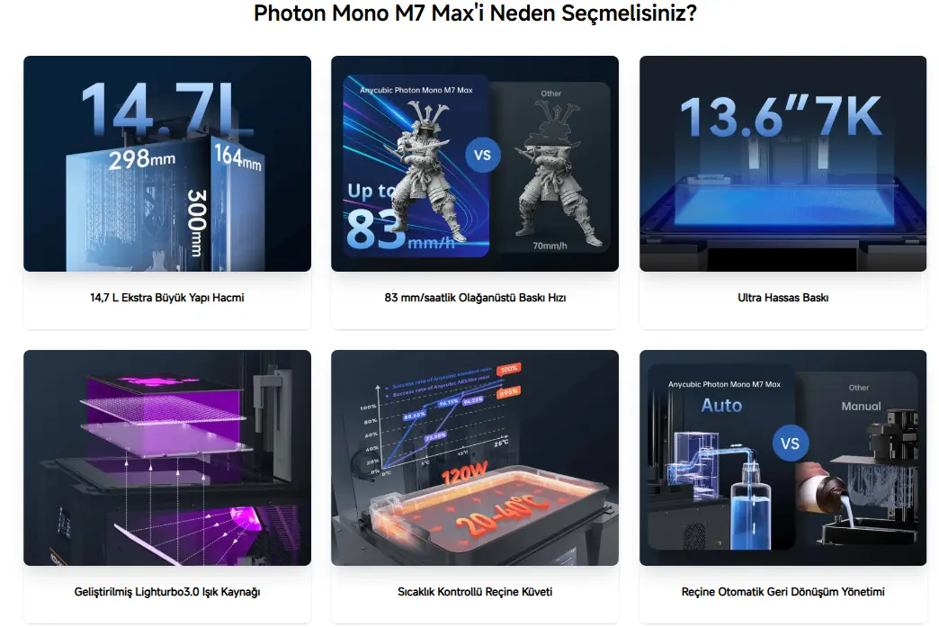 Anycubic MONO M7 MAX, profesyonel düzeyde detay, yüksek