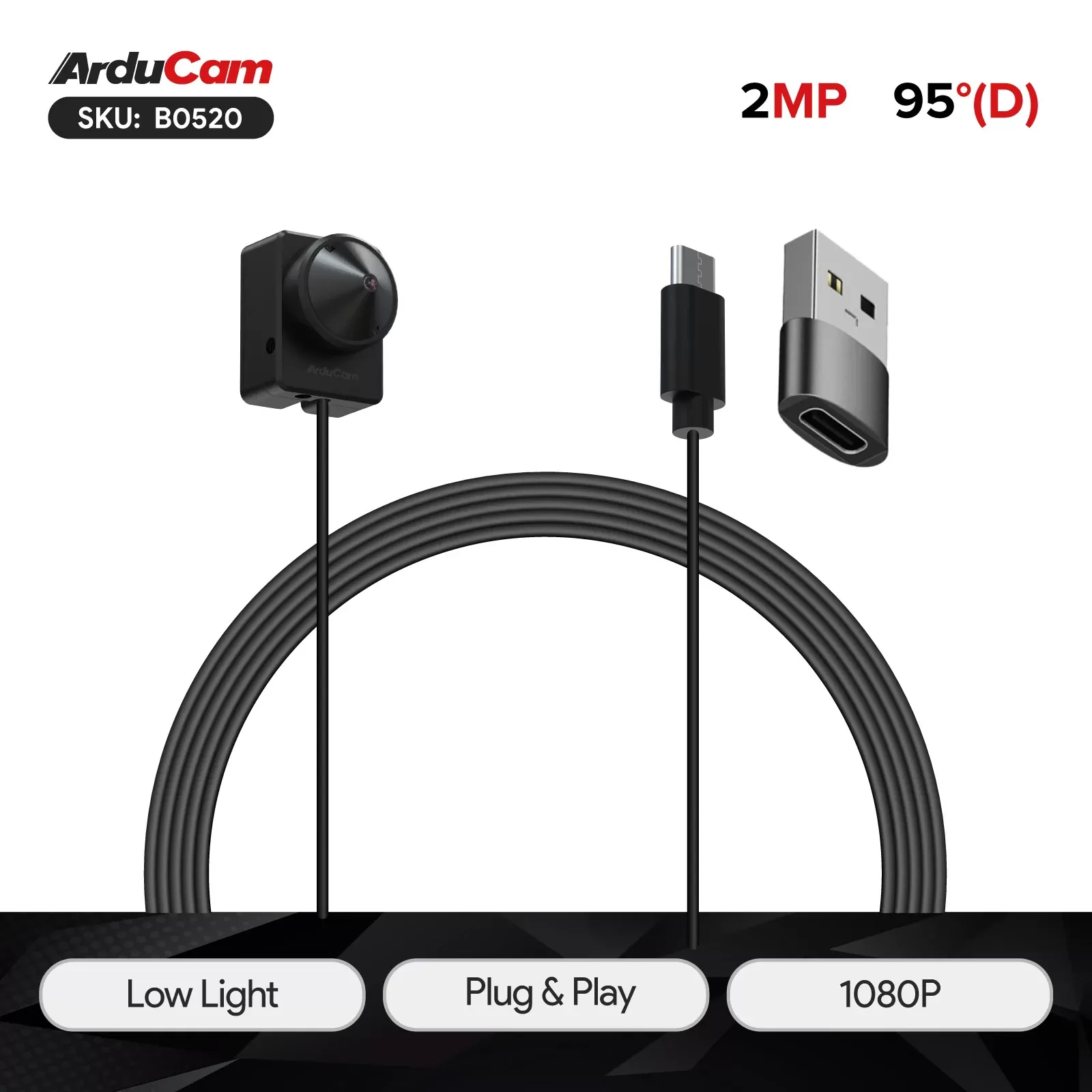 Arducam 1080P Düşük Işıklı Geniş Açı Bilgisayar için Mikrofonlu USB Kamera Modülü