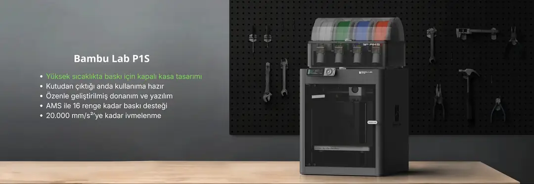 Samm Market güvencesiyle sunulan Bambu Lab P1S Combo, kaliteli üretim ve