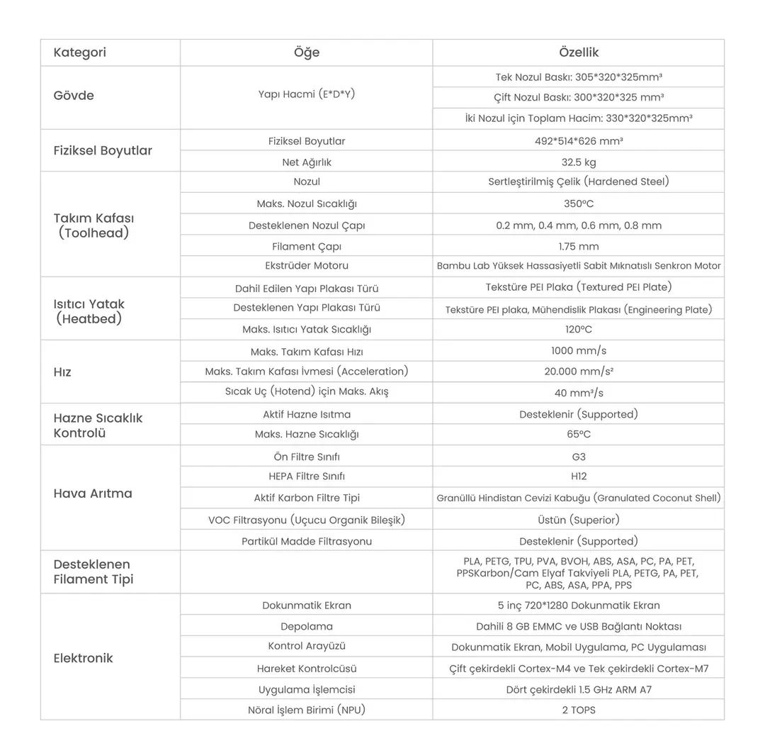 sıcaklık gerektiren filamentlerde çatlama ve warping minimize edilir.
