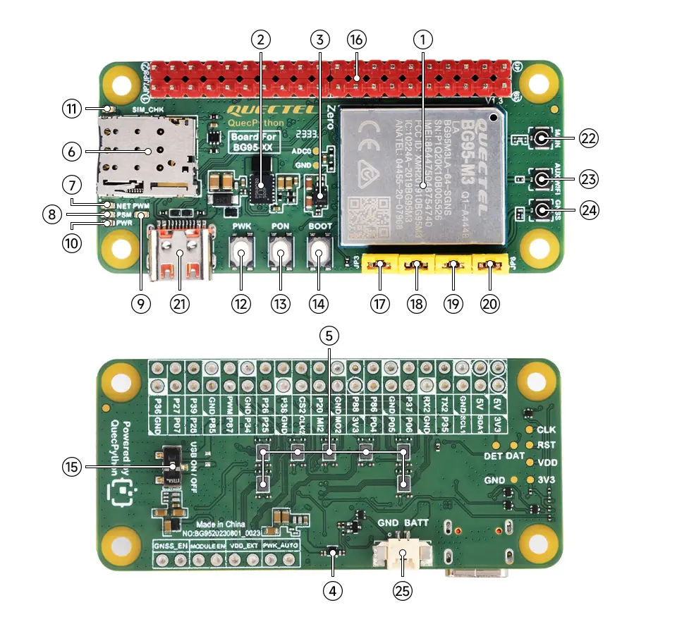 BG95-M3 Zero geliştirme kartı, çok modlu LPWA