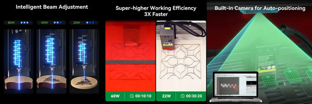 özel lazer yapısı ile toplamda 60W kesim gücü sunar. Bu yüksek güç