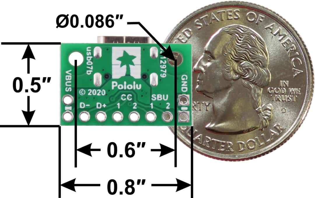 Bu kompakt breakout kart, bir USB Type-C konektörünün güç,