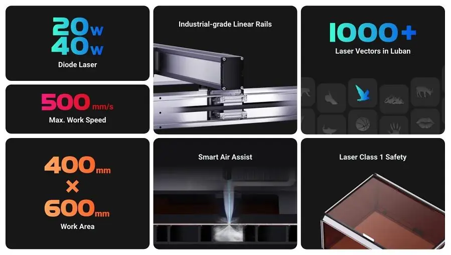 sunarak iş akışını hızlandırır. Ayrıca LightBurn yazılım desteği sayesinde ileri seviye kullanıcılar için profesyonel kontrol imkânı sağlar.