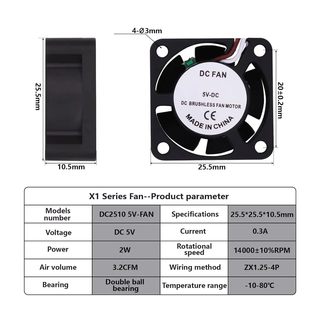 Çift bilyalı rulman (double ball bearing) yapısı, fanın uzun ömürlü ve stabil çalışmasını desteklerken, hotend bölgesinde oluşabilecek aşırı ısının hızlı şekilde dağıtılmasına yardımcı olur. Bu sayede baskı kalitesi korunur ve termal kararlılık artırılır.